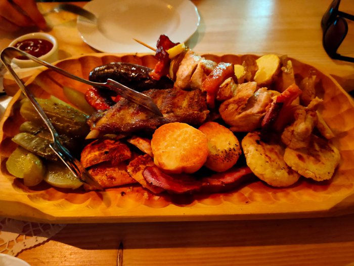 The people in charge of the Karchma Khata Zboniecska restaurant are keen to invite musical groups to entertain customers and provide a lively and enjoyable atmosphere. In addition, they host parties that tell a lot about the traditions of the Polish Highlands. The restaurant's chef prepares a variety of Polish and European cuisine using fresh local ingredients and products, where you will find grilled lamb with potatoes, honey-mustard ribs, mashed potatoes, crispy chicken fillet with salad, delicious dumplings and some types of pizza.