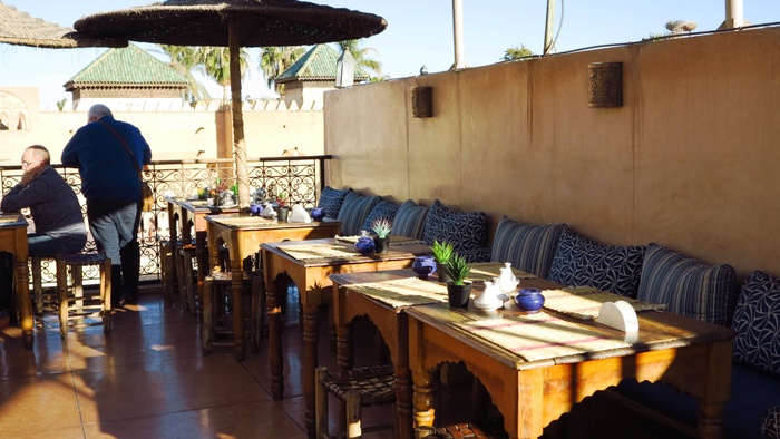 This wonderful café is located opposite the Saadian Tombs, which is one of the most visited monuments in Marrakech, and the last corner of the city where you can enjoy Andalusian art. It serves all kinds of hot and cold drinks, and also serves delicious desserts, such as home-made cakes, Other desserts such as waffles and crepes with their various additions. It also serves delicious breakfast and lunch dishes, such as grilled steaks with fried rice, and a delicious smoked salmon dish. It is a suitable place to enjoy amazing food and nature at the same time.