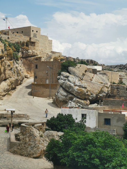 Kesra is one of the villages of the Berber state of Siliana, which has preserved its cultural identity throughout the ages, and is located at an altitude of up to a thousand meters above a mountain, and its highest point can be reached by climbing a set of colored stairs, and passing through a spring of clear and fresh water, which means that it provides a view Unparalleled panoramic views of all the surrounding areas, and this village is famous for its black figs, which are harvested in September.