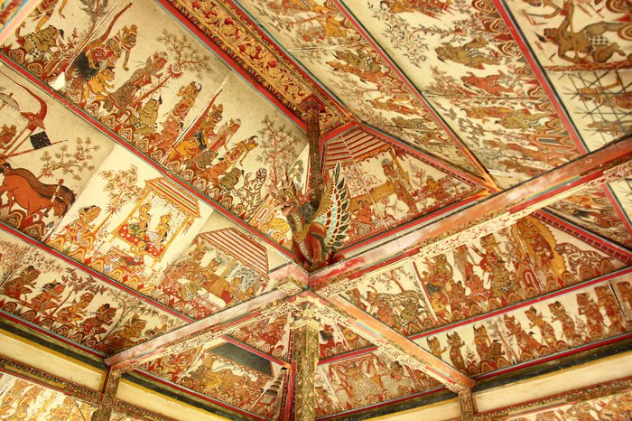 distinctive historical tourist attraction in Bali, Keertha Josea is a walled complex that forms part of the royal palace complex of Puri Semarapura and consists of two main buildings, one of which contains the Kamasan-style painted-ceilinged Bel Keertha Josea halls, and the other building is the Bel Kambang Pavilion. Surrounded by a moat. This stately place was previously used as a court of justice.