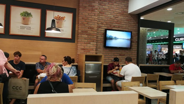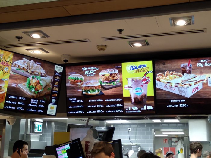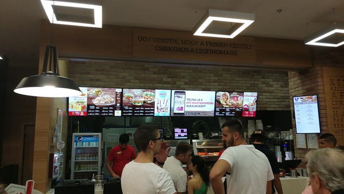 One of the branches of the international Kentucky Fried Chicken restaurants in the Mammut Shopping Center in Budapest, with a secret recipe consisting of 11 different types of spices, which are added during the preparation of the finest fried chicken pieces subject to international standards, and customers can enjoy the authentic taste, whether they order individual or family meals From fried chicken breast, thigh or wings, in addition to sandwiches, or even the famous chicken salad of the well-known brand, with french fries, bread and refreshing drinks.