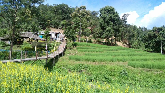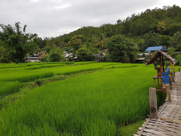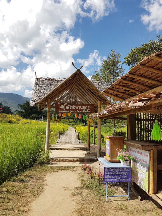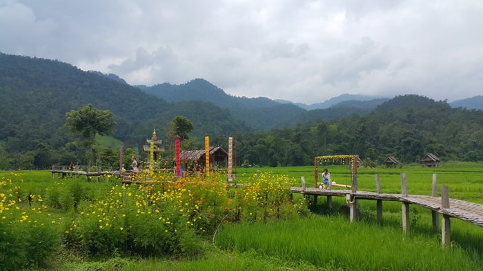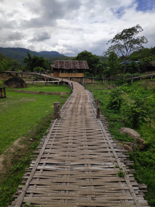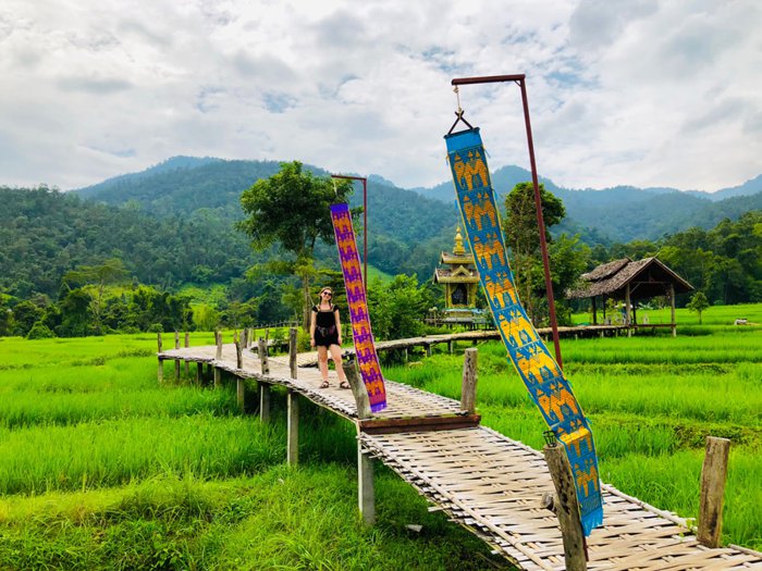 The Ko Ko Su Bridge, also known as the Bamboo Buddha Bridge, is a long bamboo bridge that crosses vast green rice fields. It was built in 2016 at the wish of Master Sakorn Jaruthammo; Director of the Kaikiri group of Buddhist monks, he wanted to build a bridge to connect the group to the village of Bambok so that all the monks could move around easily. The entire length of the bridge is 815 meters and its height is about one meter. Visitors can walk on it and take some beautiful pictures, as it is characterized by strong concrete and iron structures.