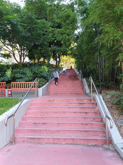 This park is located in the city of Brisbane, and it is one of the beautiful parks in Brisbane! King Edward Park contains many beautiful green trees, walking paths, benches to sit and relax, and many stairs. It is a really wonderful place. You can visit it with family or friends and enjoy sitting, eating, and even exercising. When you visit it, you will see some people doing sports. It is a convenient place to take a rest after completing the sightseeing tour of the city.