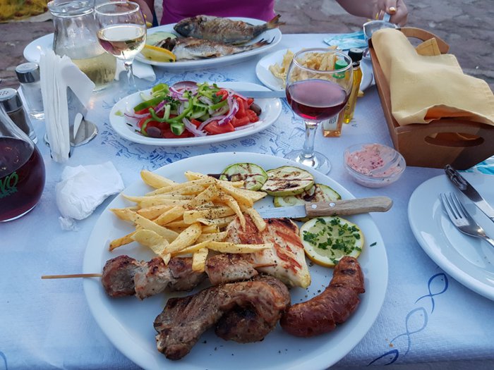 The largest number of tourists prefer to sit in the outdoor courtyard of the Kismet restaurant and enjoy eating various types of seafood in different ways of preparing them, as the chefs are keen to bring them fresh from the local fishermen in the beaches adjacent to the restaurant and serve them with the famous Greek salad, fried potatoes and different types of local sauces consisting of seasonal vegetables .