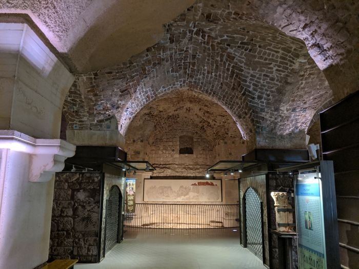 The Knights Halls, or as it is called the "Hospital Castle", is a place of monasticism for the Hospitaller groups whose mission was to preserve the safety of pilgrims in Acre during the Crusader period. The building consists of a central square, which is an open square with an area of 1200 square meters. Northern roofed with cylindrical arches, and there is another hall called the sugar pots hall, in which many ceramic pots that were used in the manufacture of sugar, a number of pottery jars, clay pots, and others were discovered. There is a section known as the Hall of Columns or the Dining Room, which is a hall built of sharpened cross vaults, and is decorated with inscriptions carved in rock.