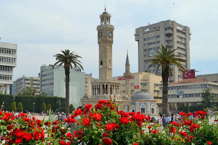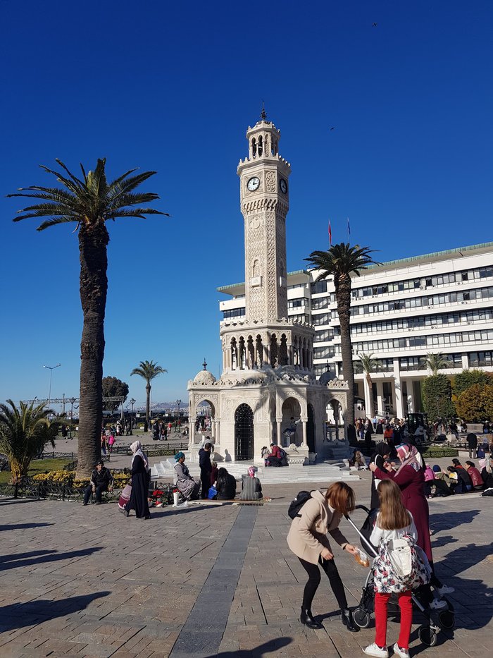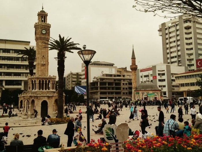 Konak Square is a crowded square located at the southern end of Ataturk Street in the Konak district of Izmir, and it is considered as the central square of the city in which tourists gather to feed pigeons and to take the most beautiful memorial photos with the clock tower in the middle of it, and many special events and celebrations are held in this square annually.