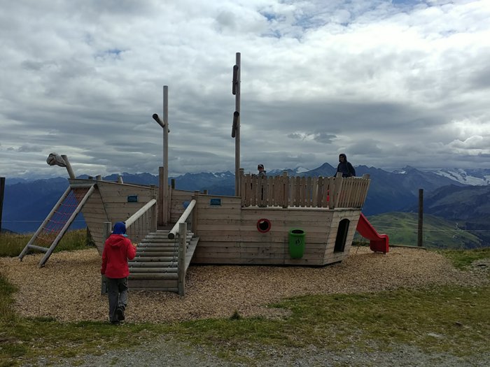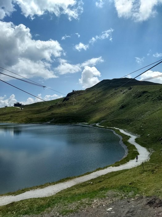 Nothing but air flowing from all sides, a rush of adrenaline and an increase in the heartbeat of adventurers during the experience of the Königsleiten Geppliner slide, the ride extends along the steel rope for a range of 430 meters, from an altitude of 2300 meters above sea level, providing a charming view of the mountains and the blue lake in Below, it is an experience suitable for adults and children over the age of ten.