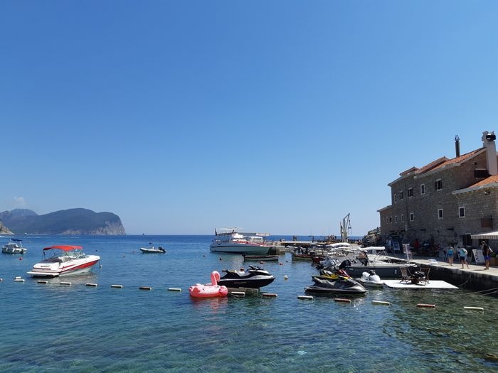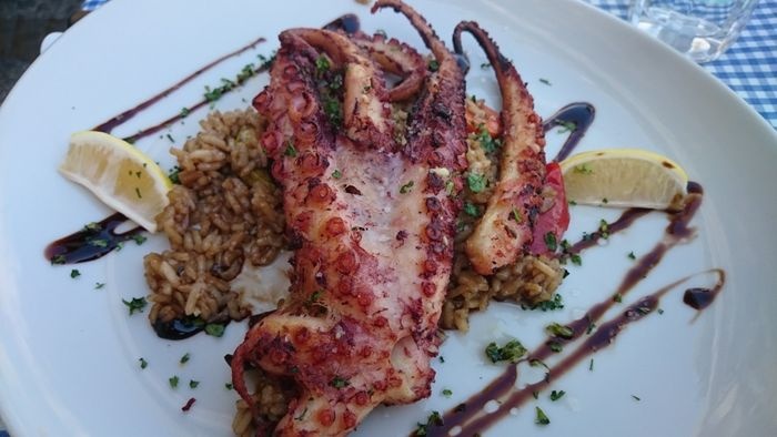 Tramuntana Restaurant specializes in Mediterranean-inspired cuisine and provides its customers with food prepared from fresh and high-quality ingredients, which makes it one of the best restaurants in Petrovac. One of the best things to try in the restaurant is pasta with clams, lamb chops, and black risotto with squid. Pasta in tomato and cream sauce, squid stuffed with potatoes, prawns marinated in garlic and lemon sauce, grilled octopus, and many other delicious items, and the restaurant is distinguished by its modern and elegant decor, which is composed of blue and white colors.
