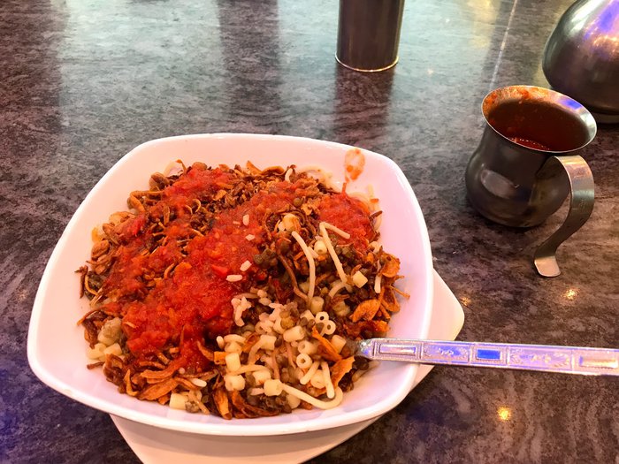 Koshary Abou Tarek Restaurant is located in the heart of Cairo and is considered one of the most famous local restaurants in it. It specializes in serving a world of local cuisine with authentic flavors, such as Koshary, this strange mixture of ingredients, falafel and molokhia.
