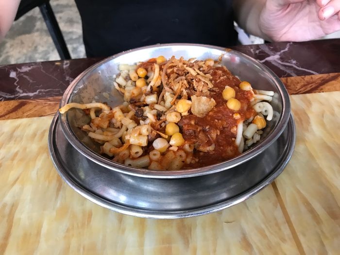 To taste the most delicious popular local food, we advise you to visit this exceptional restaurant in the city of Aswan, which specializes in providing the most delicious Egyptian food. Locals and tourists flock to the restaurant throughout the day to taste the most delicious dishes. Koshari is number one among the most requested items, which is an ancient popular Egyptian dish. It consists of rice, pasta, fried onions and lentils. It also serves side dishes with koshari, such as pickles and tomato sauce with hot sauce. It also offers types of tagines such as pasta with meat, in addition to types of wonderful desserts such as rice with milk and cream caramel.