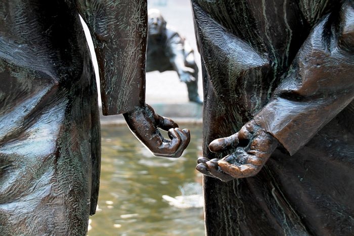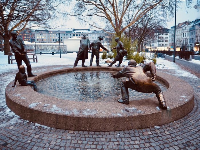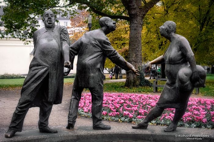 The Money Fountain was established in the city of Aachen in 1976 AD by Karl-Henning Seemann, and it consists of bronze statues of people symbolizing greed, nepotism, and begging, and just like money, water flows in the fountain throughout the year, as it is supplied with water from Thermal springs, and in the summer in particular, the fountain is a popular meeting point for locals and visitors to the city, and for young and old looking to relax and cool off next to the flowing waters.