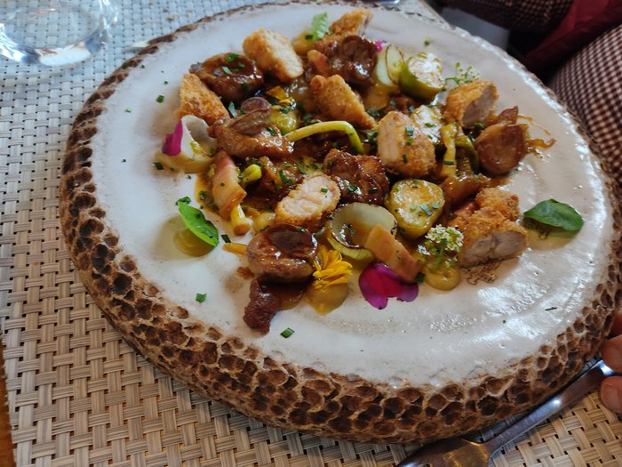 La Sandunga Restaurant is located among the vineyards near the cities of Santa Cruz de Tenerife and San Cristobal de la Laguna; Which gives it a stunning view of the countryside, and is characterized by its beautiful interior design with elegant wood furniture and spacious windows. It also serves a range of delicious seafood appetizers such as tuna tataki and smoked mackerel, and one of its most delicious main dishes is Peking duck.