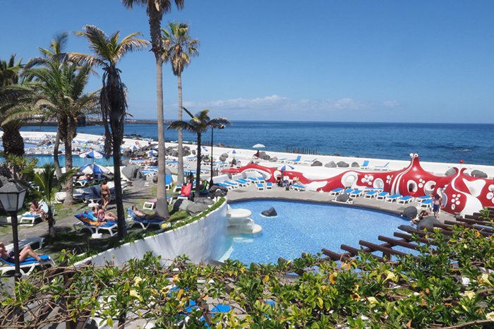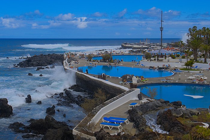 Lago Martinez is an outdoor recreational pool complex located in the city of Puerto de la Cruz. It is considered one of the architectural masterpieces designed by the architect César Manrique in the style of traditional Canarian architecture. It includes a large artificial lake surrounded by beautiful pools, in addition to manicured gardens, restaurants and terraces. Beautiful, with unparalleled views of the volcanic Mount Teide.