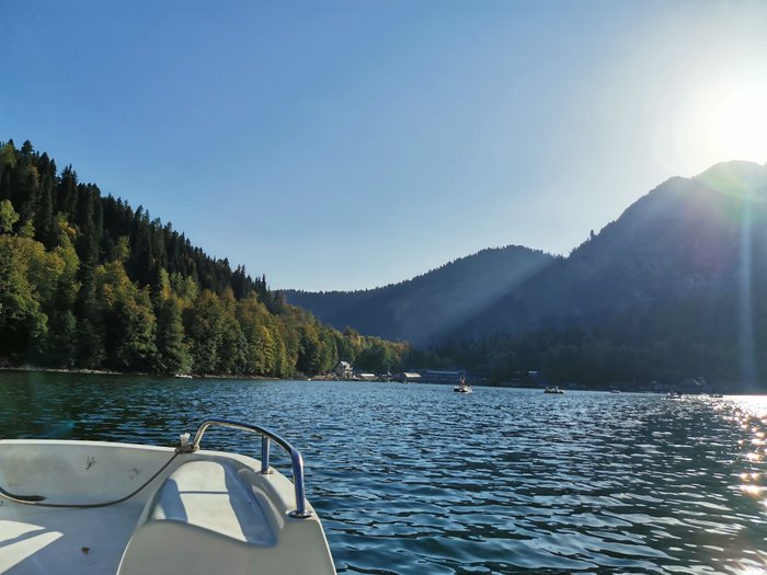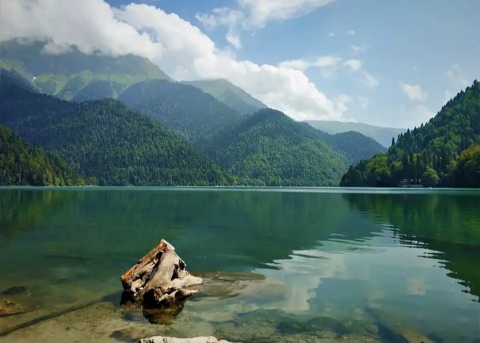 Lake Ritsa is one of the most beautiful and simplest lakes that you can see in the world, and it is located at an altitude of 950 meters above sea level, and is distinguished by its turquoise waters surrounded by green hills rich in various types of local plants and trees, and it is visited by many hiking enthusiasts, as there are many The beautiful areas that you can visit while you are nearby, including the small waterfalls that are a popular tourist destination in the place.