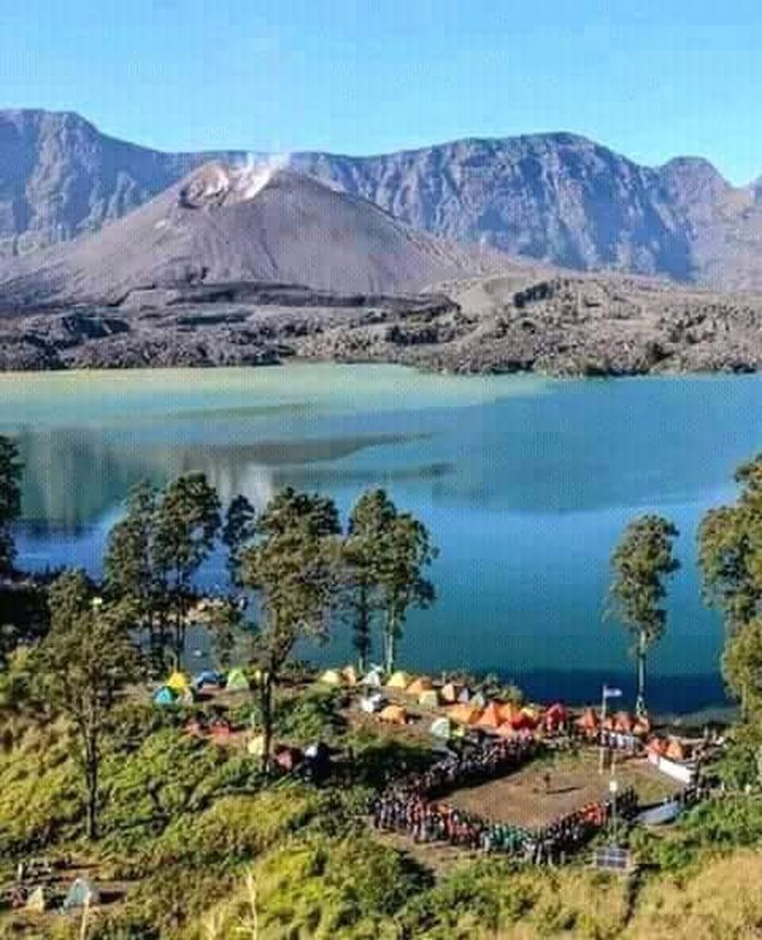 Lake Segara Anak is located next to Mount Rinjani in Indonesia. The lake was formed during the volcanic eruption of Mount Samalas in the caldera. The name of the lake means "child of the sea", and it refers to the similarity of the color of the lake with the color of the sea. The lake is one of the most beautiful and important tourist destinations, as it is located at an altitude of 2004 meters above sea level. It is a suitable destination for travelers and lovers of camping and adventures. You can also take a group of wonderful pictures in the charming nature there. You can relax and get treatment at the same time; As there are 4 hot water springs in the lake due to the volcano from which the lake was formed, which contain a number of therapeutic natural elements such as sulfates and salts. The trip to reach the lake takes about two days and one night, during which it passes through a wide range of scenic landscapes.