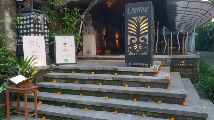Lamak Restaurant has a beautiful design that reflects Balinese traditions with marble carvings, and provides a distinctive menu that fuses classic local dishes with modern Asian and European flair. When visiting, we advise you to try the seasonal steamed ocean fish with curried couscous.