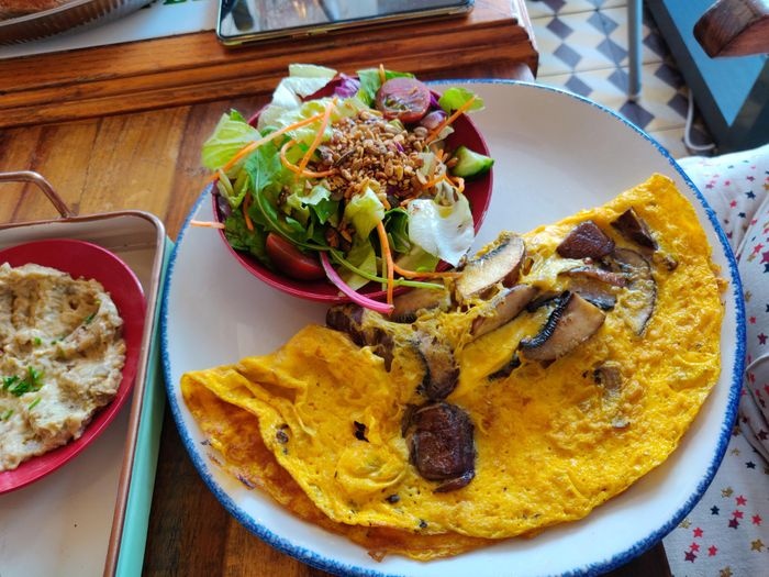 distinctive café that you will want to return to again, as its decorations are beautiful and its environment is comfortable and suitable for meetings with friends and families, and at the same time, the dishes and drinks it serves are delicious and prepared from the finest ingredients found in the local market. It may catch your eye when you enter the cafe, the olive tree in its heart, as it is decorative and at the same time one of the factors that make this cafe special. The place offers light dishes from different international cuisines, including shakshuka, snamon rolls, pizza, pasta, and salads of all kinds.