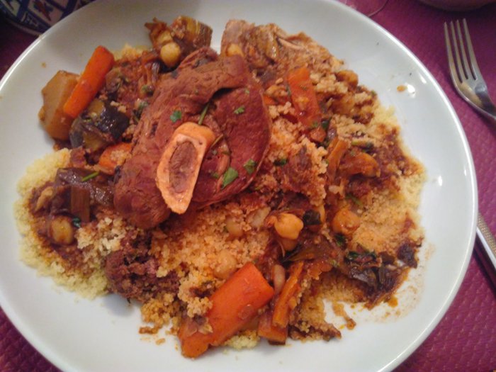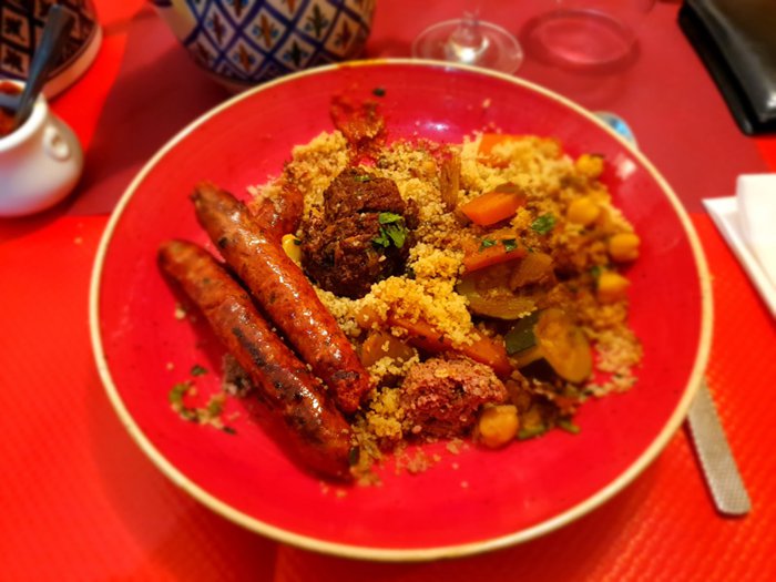 place that will inevitably impress you as soon as you enter it. Its decorations are wonderful, with Islamic motifs, huge drawings, Bedouin table covers, and Moroccan dishes with wonderful blue and turquoise decorations. The restaurant's decorations are reflected in the dishes served, all of which are delicious Moroccan dishes that are carefully prepared and made from the best and freshest ingredients. Among the dishes offered there are kofta, shish tawook, meat zarb and many others.