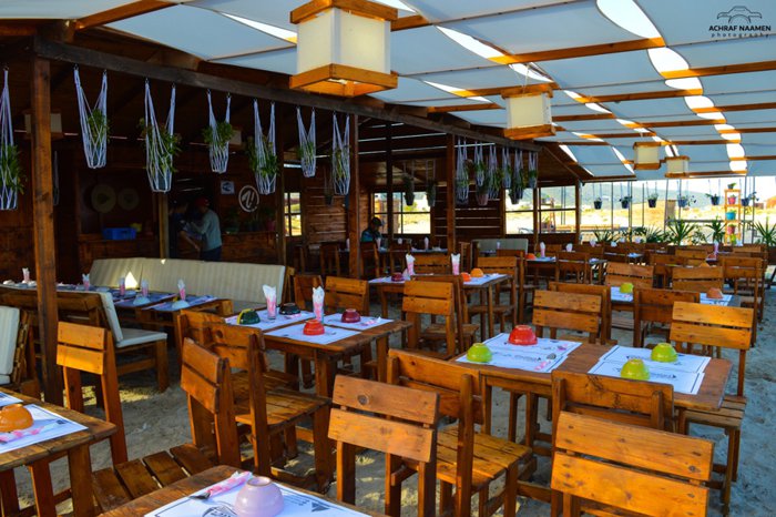 Le Vuilier Lounge is a seafood restaurant on the beach of Ghar El Melh in the wilaya of Bizerte. The restaurant has wooden decorations that make its environment warm and suitable for gatherings with friends and families. There is also a shaded outdoor cabin in the restaurant where visitors will be able to get wonderful views of the Mediterranean while eating their delicious dishes. Among the seafood dishes it offers, there are grilled fish, fried shrimp, Sayadiyah and many others.