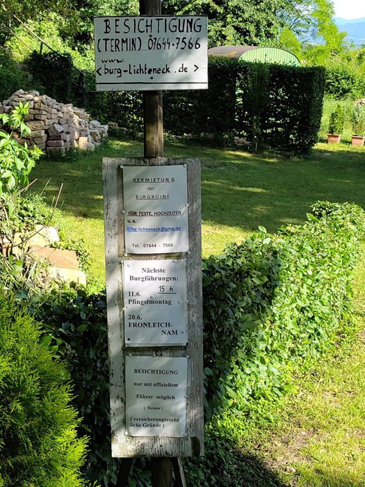 Lichtennik Castle is the ruins of the Spor Castle and is located at an altitude of 242 meters above sea level. The castle was probably built between 1265 and 1272 by the Counts of Freiburg. The castle was destroyed in the Geroldsijk War of 1433, rebuilt in the 16th century and finally destroyed on April 15, 1675 in the Dutch War by French forces under General Nicolas de Bautru.