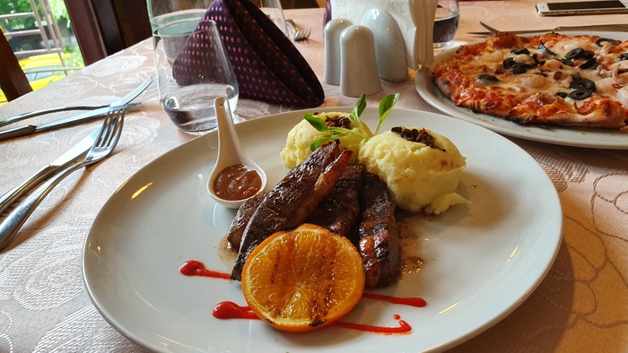 The restaurant is one of the most well-known restaurants in Sinaia, serving a variety of delicious dishes, including: grilled salmon, Italian pizza, various desserts, and pasta dishes, in addition to various salads and grilled and boiled vegetables. A wonderful and quiet place to dine with family, friends or co-workers, in addition to the friendly restaurant staff.