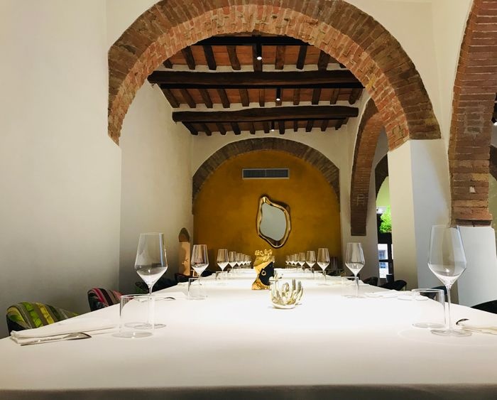 Linfa Restaurant is considered one of the most luxurious restaurants in San Gimignano. The restaurant draws attention with its elegant modern interiors and distinctive decorations. The way the dish is presented and decorated is one of the most attractive things in the restaurant as well, as the chef pays great attention to the appearance of the outer dish in terms of quantity and consistency of colors within the same dish. The menu includes many distinctive options, especially for the restaurant, which are worth trying, including many varieties of pasta, as well as some seafood dishes, smoked meat slices, and others.