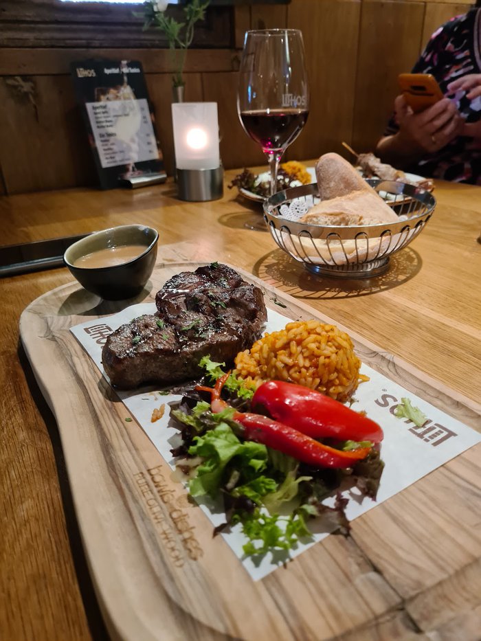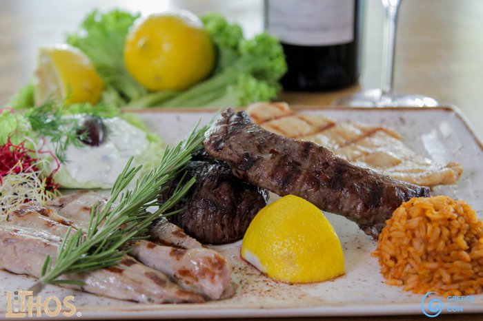 Lithos Grix Restaurant serves classic Greek dishes, which are prepared with fresh ingredients and herbs from Greece. You can enjoy a variety of dishes from meat and seafood, as well as vegetarian dishes, in a relaxed atmosphere and wonderful staff.