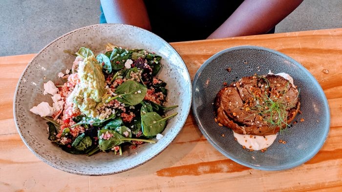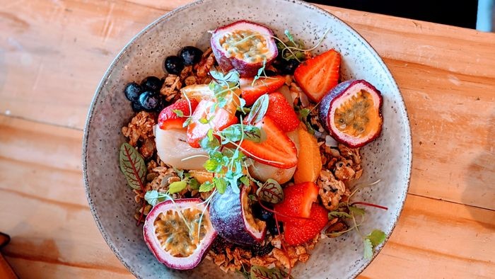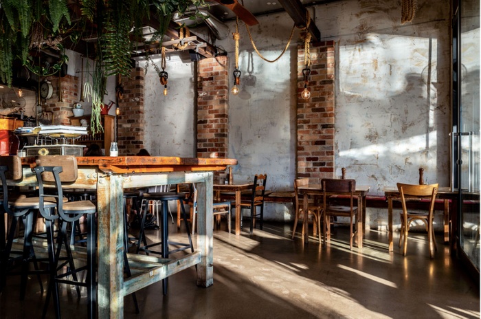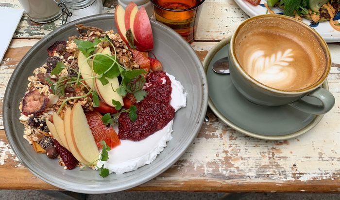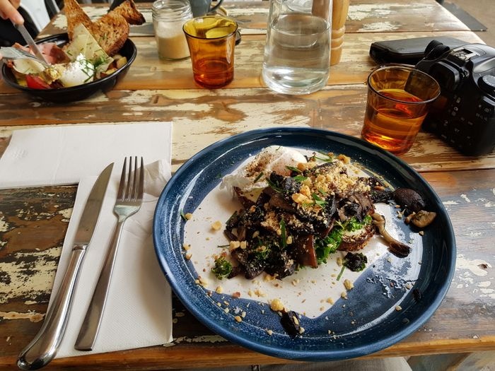 modern café with elegant interiors, with its brick walls and antique wood table. This café, with its relaxed and bright atmosphere, strives to provide healthy modern Australian cuisine, as well as a wide selection of coffees and desserts. Among these dishes are toast sandwiches with boiled eggs, sweet pancakes, granola with fresh fruits, you can also form your own salad, choosing the available ingredients that you like, and many more.
