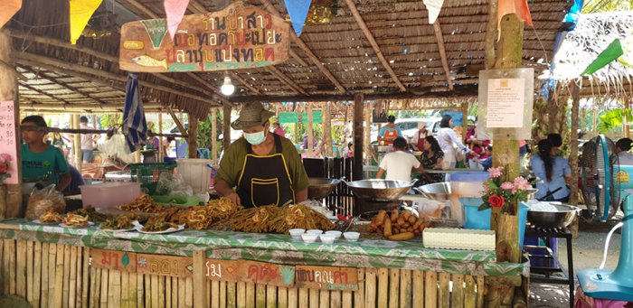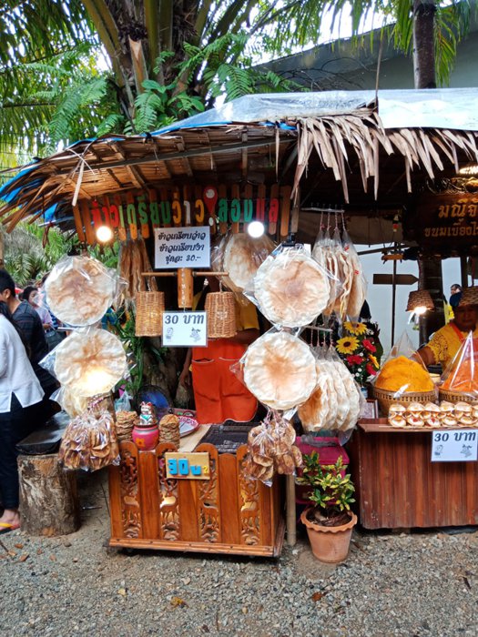 The most special thing about Longlai Market in Phang Nga is its lively and popular atmosphere. It is filled with busy shoppers, locals and merchants coming from the surrounding villages to sell their handcrafted products. Here you can find a variety of clothes, shoes, leather, textiles, handicrafts, souvenirs, traditional Thai food and sweets. And many other high quality goods.