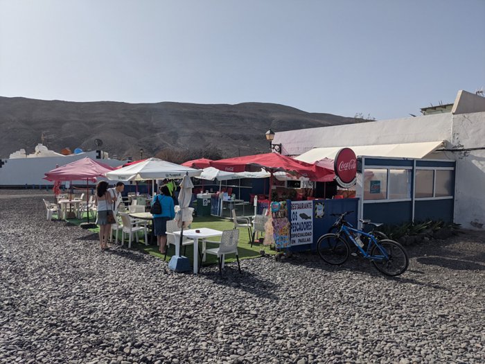 Los Pescadores Restaurant is located on Pozo Negro Beach, and it is one of only three restaurants near the beach. It serves many wonderful local cuisine from various seafood dishes and many appetizers and paella such as garlic shrimp, fish soup and mixed croquettes. Its beach is distinguished by its black sand and turquoise waters. .