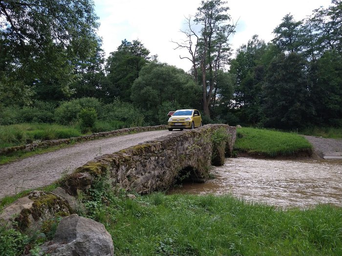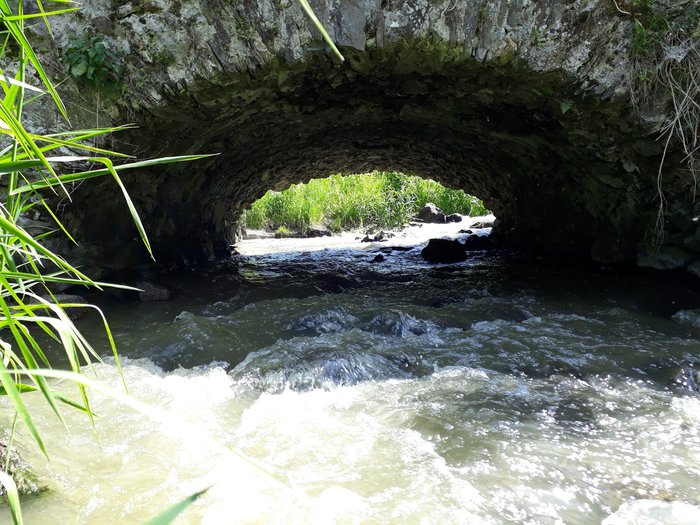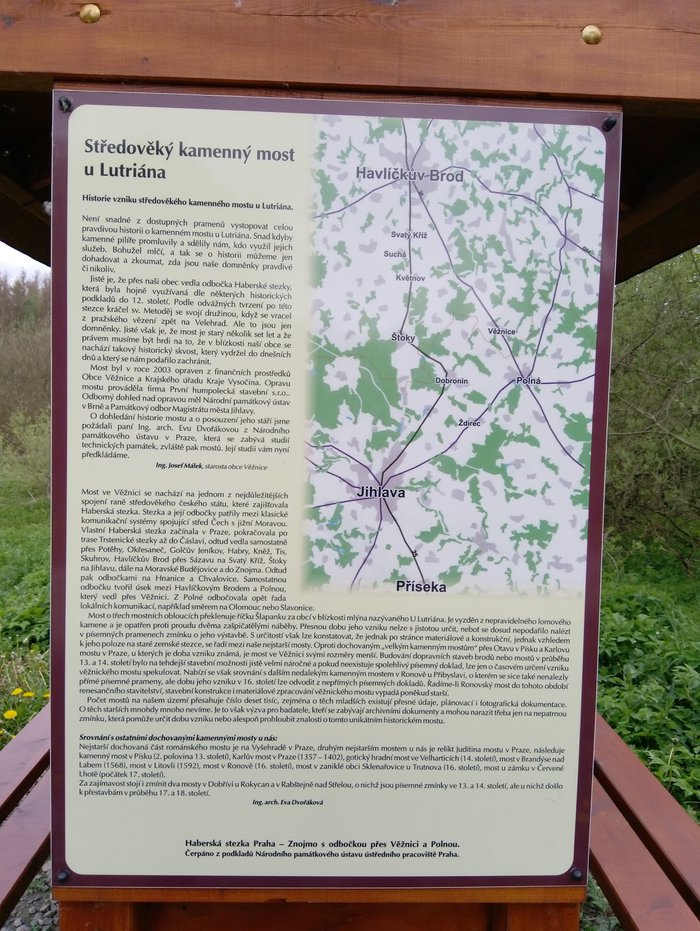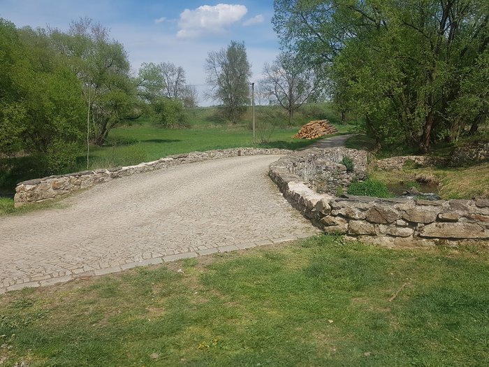 The Orotriana Stone Bridge was built on the old rural road between Moravia and Bohemia and extends over the Spalanca River. It is a three-arched stone bridge estimated to have been built in the Middle Ages. It consists of irregular stone covered by equal-sized arches. The length of the bridge is approximately 16 meters and its width is approximately 5 meters. The bridge is important because it dates back to the Middle Ages, which makes it an important landmark in the region.