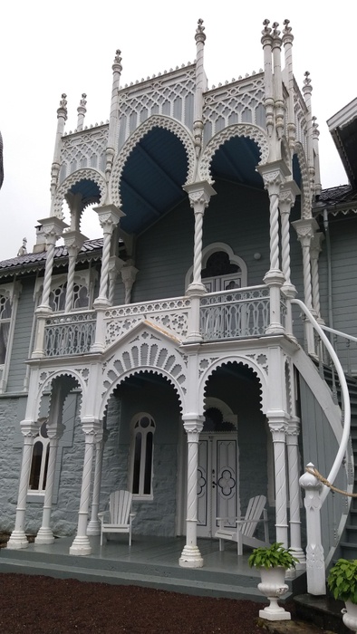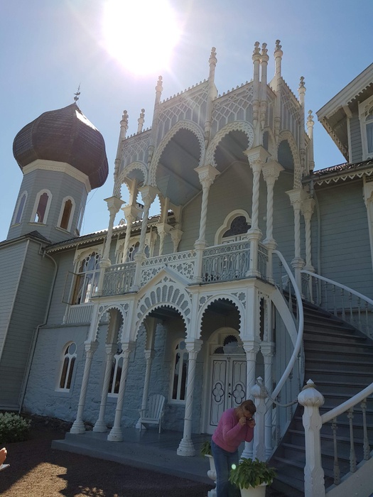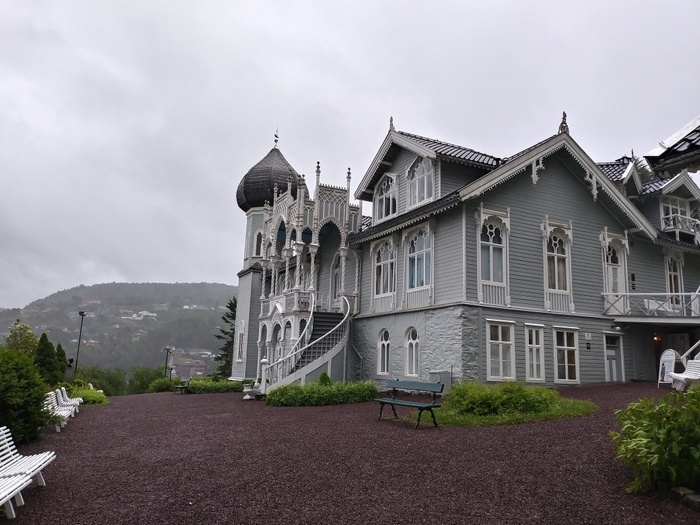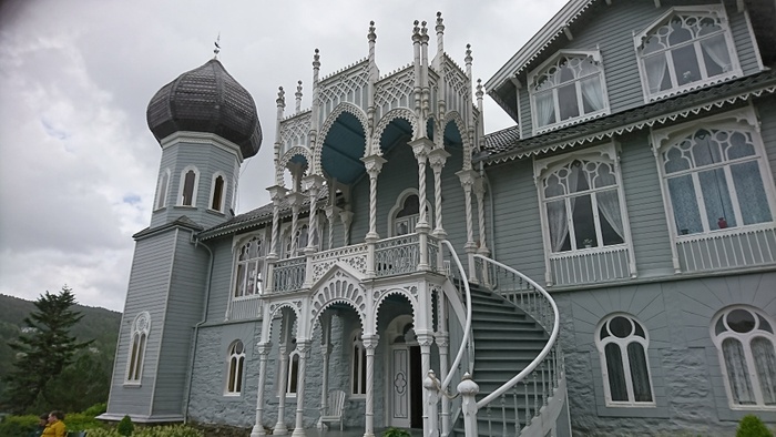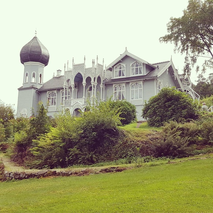 This large and beautiful villa was built in 1873 for the Norwegian violinist Ole Bull, on Lisson Island in Bergen, Norway. The villa is inspired by several architectural styles, including Swiss chalet style and Moorish architecture. It has an onion-domed tower, common in Russian architecture, and many wood carvings. There are also 13 km of romantic trails and paths, ponds, gazebos and ponds, as there are exotic trees and shrubs in the original pine forest. The villa and all its contents were donated to the Norwegian Antiquity Preservation by his granddaughter, Dame Sylvea Bull Curtis.
