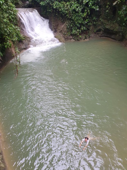 The beautiful Mag Asu Falls can be reached by walking in a dense forest and on cement stairs, and it is one of the most beautiful waterfalls on the island of Bohol, where its bright white water falls on smooth rocks, and flows into a pool of a picturesque turquoise color, as it is surrounded by rock formations ( of varying heights) that form a platform for jumping in cold water.