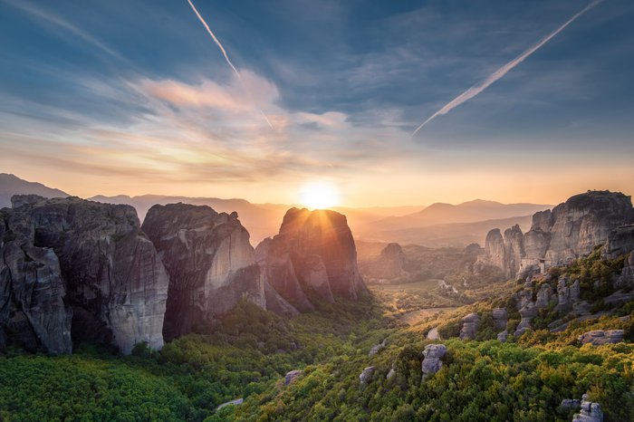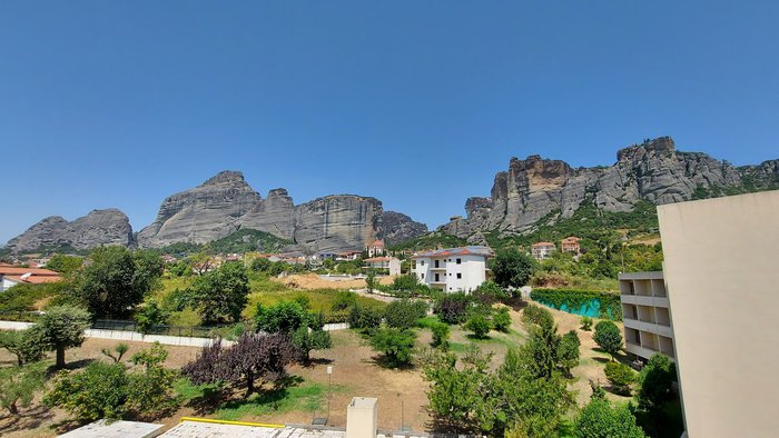 The Meteora observation deck is a very popular spot in the city of Kalabaka, and it is also known as "Sunrise Rock", because it is an ideal location for watching the amazing sunrise, and visitors come to it either on foot or using vehicles, and there are several parking spaces available as well, and you can then Enjoy the amazing panoramic view of the city, mountains and surroundings.