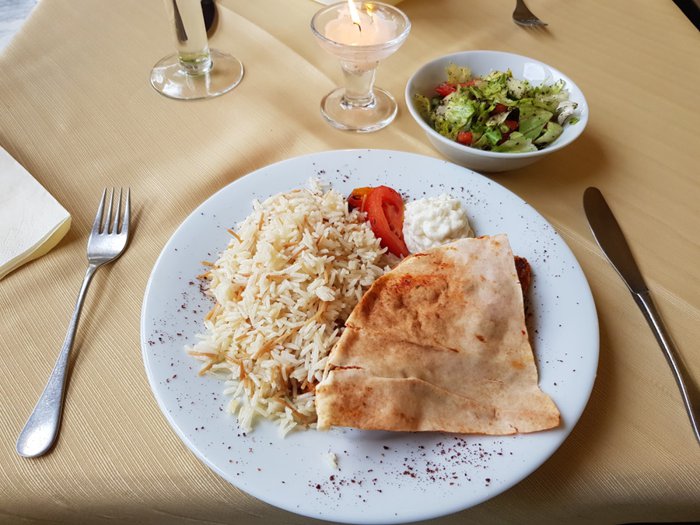 Visiting Maaloula Restaurant will make you feel as if you are sitting in one of the old Levantine houses, as it enjoys the original oriental décor, comfortable atmosphere and staff that reflects a distinctive image of Syrian hospitality. It also provides a menu with an irresistible variety of oriental and Levantine specialties, including hummus, falafel, sambousek, kibbeh and baba ghanoush. Lentil soup, grilled halloumi cheese, fattoush, tabbouleh, kofta, upside down, shawarma, spicy fish, shish tawook, and more. For dessert, there is pudding, baklava, and qatayef.