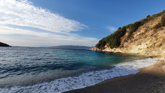 Manastirit Beach can be accessed through a narrow and sloping road, and although it is difficult to reach, it is considered one of the vital attractions that attract tourists from everywhere, due to its pebble extension mixed with fine sand and clear water, suitable for swimming and diving with friends, and it must be noted There is a bar, restaurant and children's area nearby.