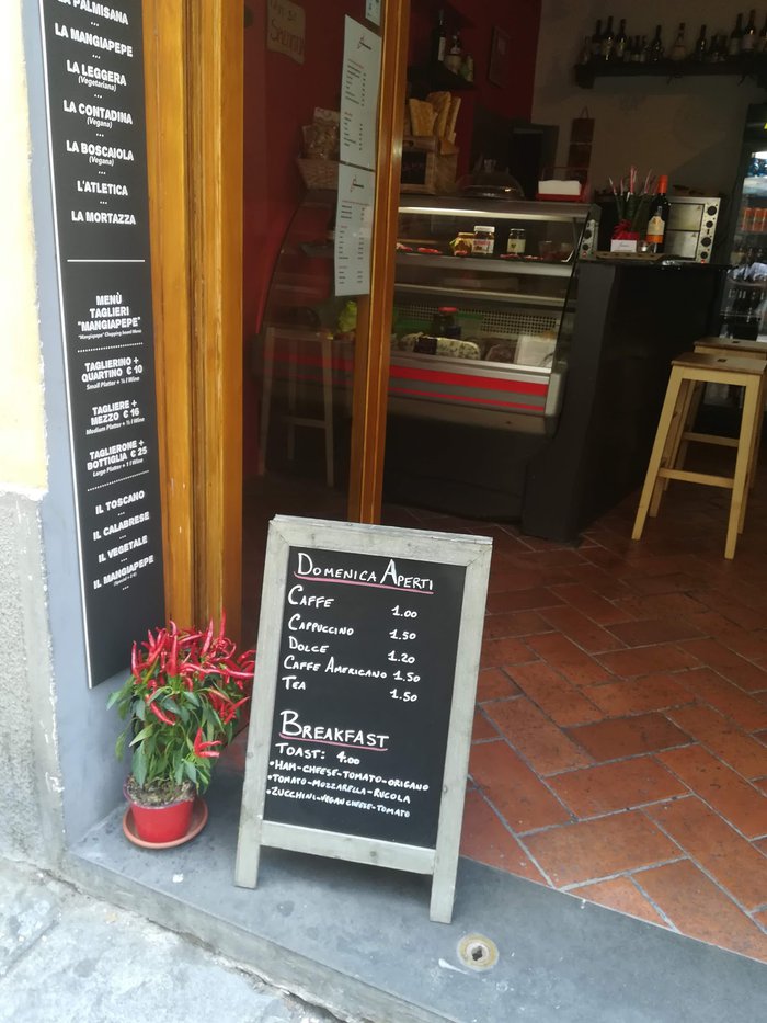If you are looking for a warm and cozy place to have some food after a long day in Florence, then you should try the small Mangippe restaurant, which serves a wide variety of cheeses and cold meats, as well as offers various types of sandwiches. As the name of the restaurant means "eating pepper", the restaurant focuses on spicy foods that open the appetite, and of course there are many options for those who do not like spicy flavors.