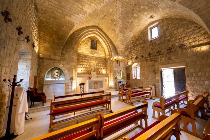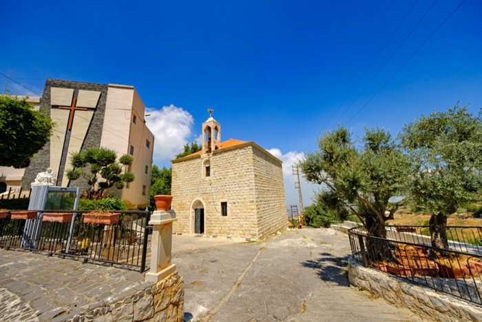 Mar Saba Church was built in the village of Al-Akoura in the Middle Ages. It is a Crusader church dating back to 1262 AD. It was designed in a Roman, rural and military style, with very large walls, large columns, and narrow windows for archers. The church is distinguished by its frescoes, which were restored in 2014 by the Association for the Restoration and Study of Medieval Frescoes in Lebanon (AREFML). On the north wall are the Dormition of the Virgin Mary and Syriac inscriptions, while on the south wall are the Virgin Mary and Jesus Christ.