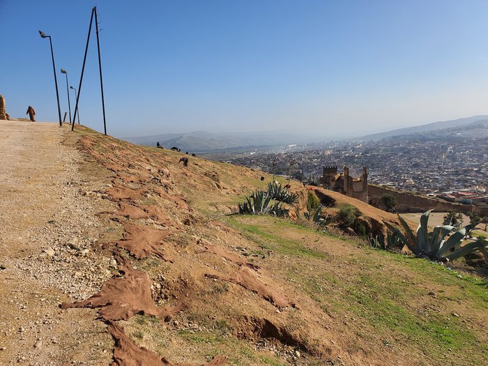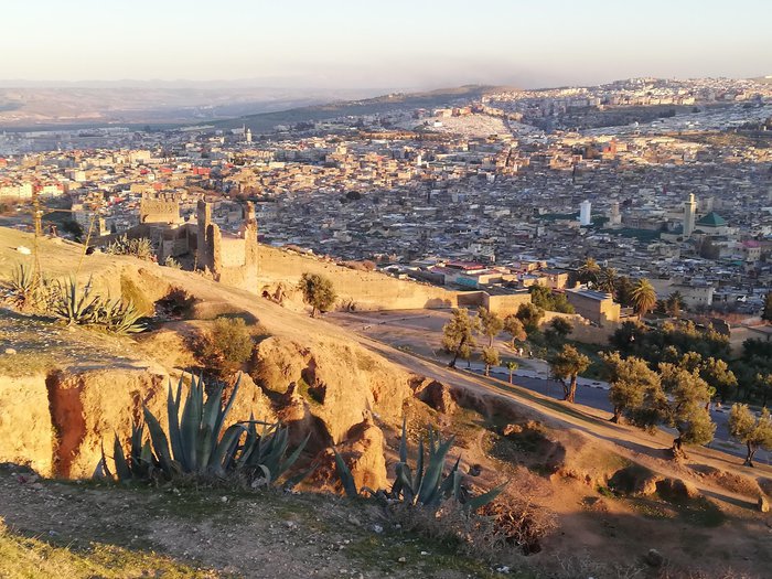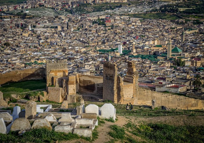 The Marinid Tombs are a group of ruined archaeological tombs located on a hill in the north of the ancient city of Fez. It was originally a royal tomb for the Marinid dynasty that ruled Morocco in the thirteenth and fifteenth centuries. Today, the area is very popular with locals and tourists due to the importance of the site. In addition to its location, which has a stunning view of the surrounding areas, it is recommended to visit it at sunset to enjoy a charming view.