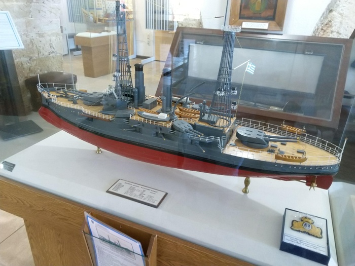 The Maritime Museum of Crete is a museum in Chania. His collection includes ship models, nautical instruments, historical drawings and photographs, and war relics. The materials are classified in chronological order, from the Bronze Age to our time. The exhibits on the first floor include models of ancient ships, which are models of the fortified city and port under Venetian rule. The second floor exhibits include models of modern Greek Navy ships, destroyers, a missile boat and a landing ship carrying trucks and APVs on board. Exhibits include the destroyer's full bridge and two torpedo thrusters.