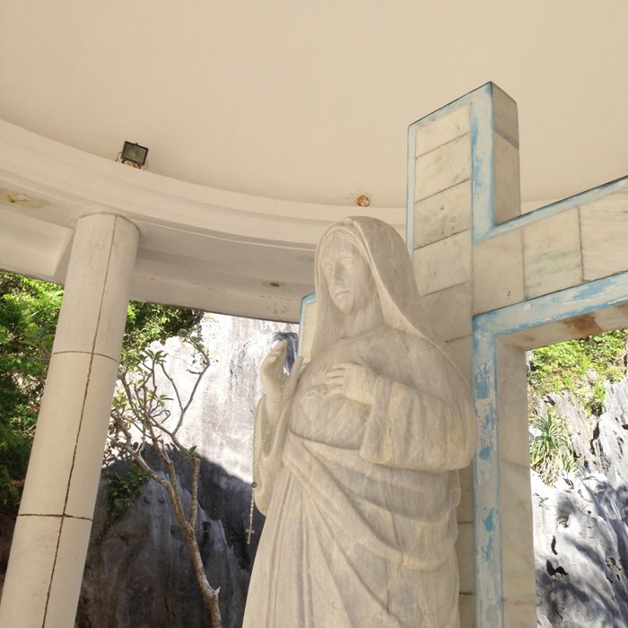 Matinloc Shrine is located on the picturesque island of the same name, specifically between a beautiful beach and beautiful rocky cliffs surrounded by green vegetation and lush trees; It is an abandoned archaeological site with a white dome. It was built in 1982 AD and dedicated to the Virgin Mary. Today, it is one of the favorite attractions for many locals and foreign tourists.