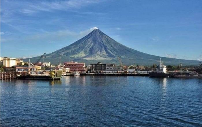 The symmetrical Mayon Volcano was active frequently during historical times, and today it is one of the attractions that attract many tourists every year, as it enjoys a height of 2462 meters above sea level, and it can be seen from many cities and towns and during the various outdoor activities, as it decorates it White clouds and is reflected in a picturesque way on the surrounding water bodies. It should be noted that this volcano erupts from time to time.