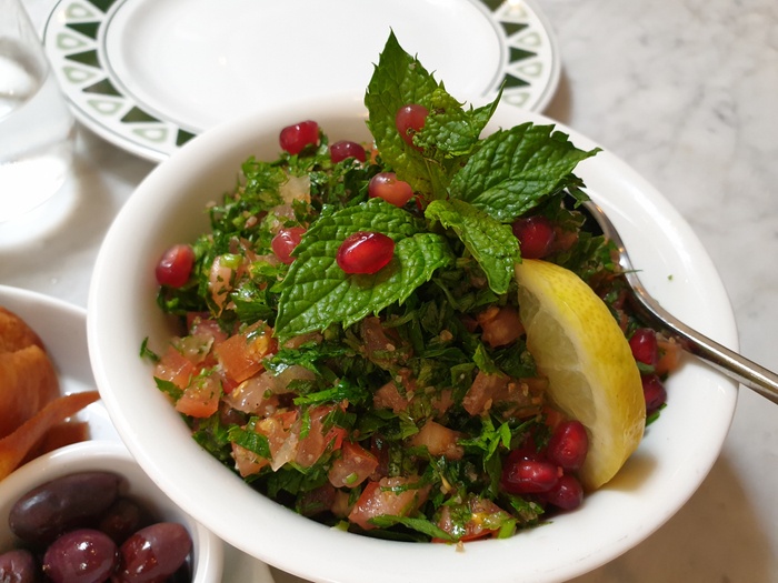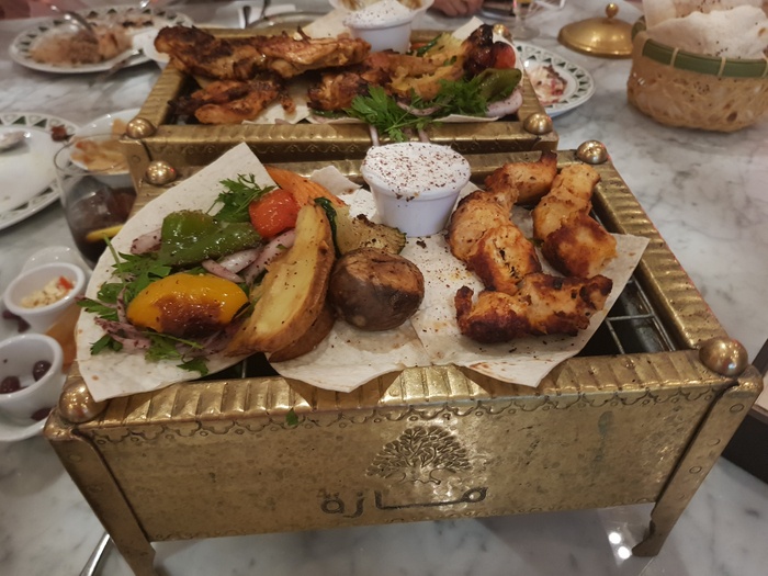 Lebanese restaurant with a modern and distinctive decor, with simple touches from the East, in a calm atmosphere, suitable for families and groups. The menu includes various types of delicious Arabic food, including appetizers such as hummus, labneh, muttabal, samosas, vine leaves, arayes, sfiha, zaatar manakish, fatteh laban, and salads such as fattoush, tabbouleh and Armenian salad. As for the main dishes, rice dishes are available, such as the Ouzi dish, in addition to various grills such as kebabs, shish tawook, steaks, kibbeh, and others. There is also a range of desserts available, for example, but not limited to, kunafa, rice pudding, osmaliya, sweet cheese and fruit salad.