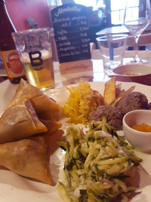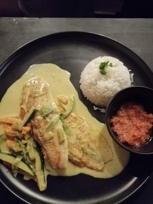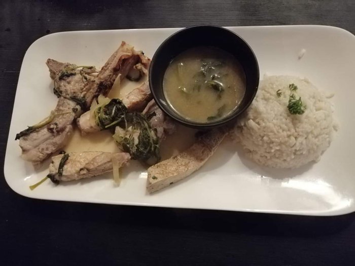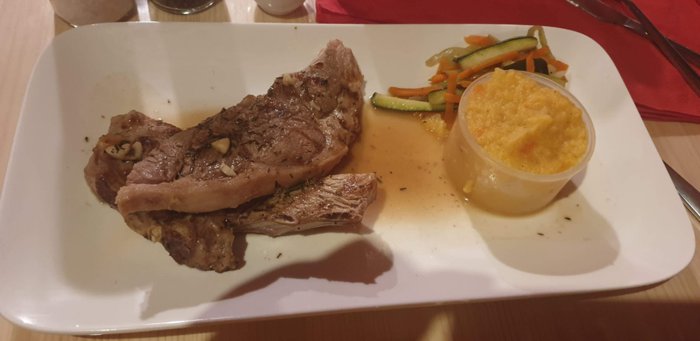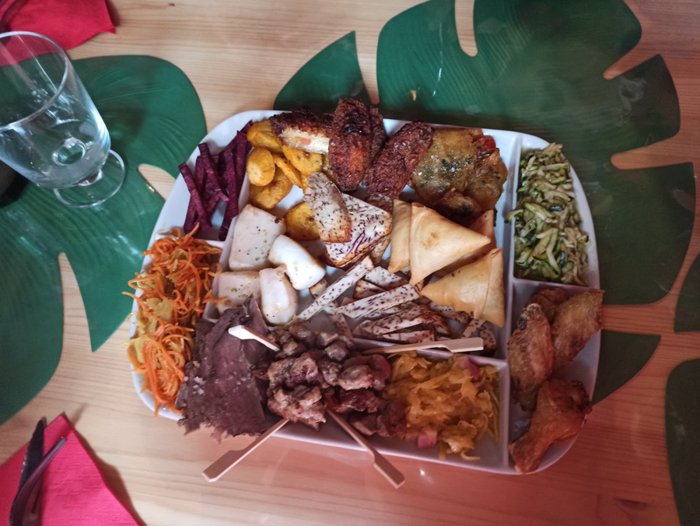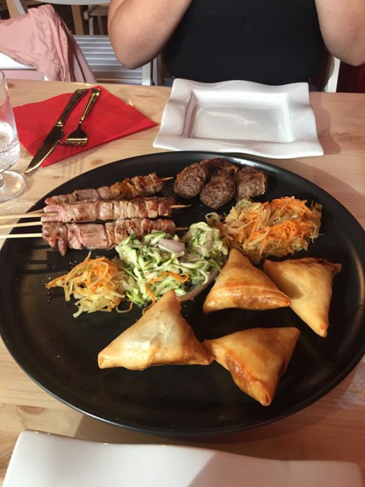 Mbar e Kale Restaurant serves dishes of samosas, kebabs, fried chicken, chicken wings, chicken breasts with spinach and rice, grilled steaks with mashed potatoes, grilled fish and many others, in the wooden seats distributed in the small inner hall, with a quiet and comfortable atmosphere.