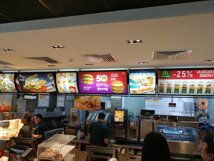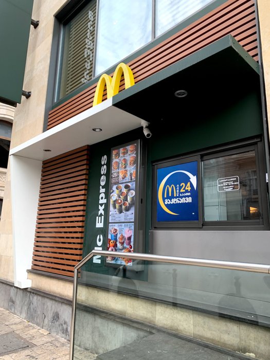 In the city of Tbilisi, Georgia, on Cote Marjanishvili Street, the American McDonald's brand, which specializes in serving American burgers, attracts customers who want to try these dishes, to sit on their comfortable seats, and eat one of the unique options from the international menu, including the Big Mac, or Big Tasty , Quarter Pounder with Cheese, Double Cheeseburger, Smoky BBQ and more. As for dessert, there is the delicious McFlurry, with different foods from Oreo or Kit Kat, and many others.
