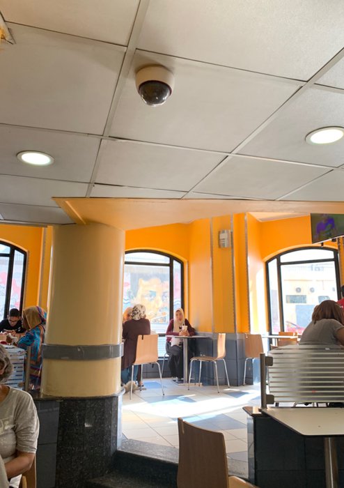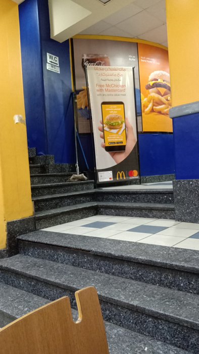 The McDonald's restaurant, located in the vicinity of Tahrir Square in the city of Cairo, enjoys modern and comfortable seating, distributed inside the spacious hall with yellow walls, in the middle of which are large glass windows, allowing the entry of gentle sunlight, where individuals sit on the seats to enjoy ordering one of the famous options from Big Mac, or Big Tasty, Quarter Pounder with Cheese, Double Cheeseburger, Smoky BBQ and more. As for dessert, there is the delicious McFlurry, with different foods of Oreo or Kit Kat, and many others.