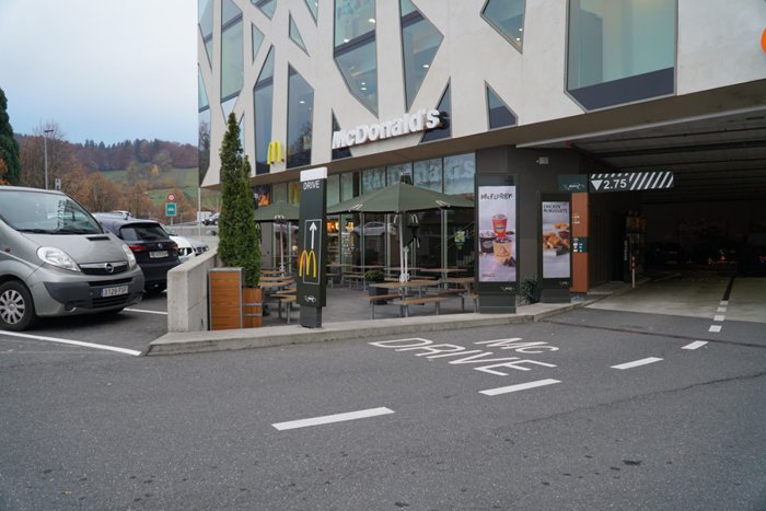 The McDonald's Seminalstraße branch in Interlaken is one of the branches of the McDonald's international chain of restaurants that is particularly suitable for vegetarians, as its special menu includes meals suitable for them in addition to the regular chain meals served with french fries and soft drinks, which customers can eat in or outside the restaurant.