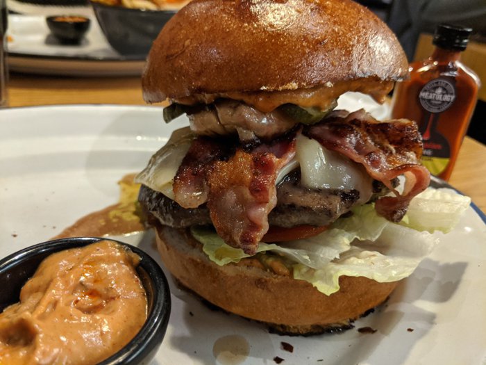 Meatology Budapest Restaurant represents a meat paradise for lovers of its various dishes of grilled steaks with mushrooms, broccoli and potato sauce, or burgers with lettuce, tomatoes and french fries accompanied by the restaurant’s special sauce, in addition to sausages with bread and salads, and lamb soup with onions and tomatoes, and many more. Meals that can be eaten in the outdoor and indoor sessions of the place.