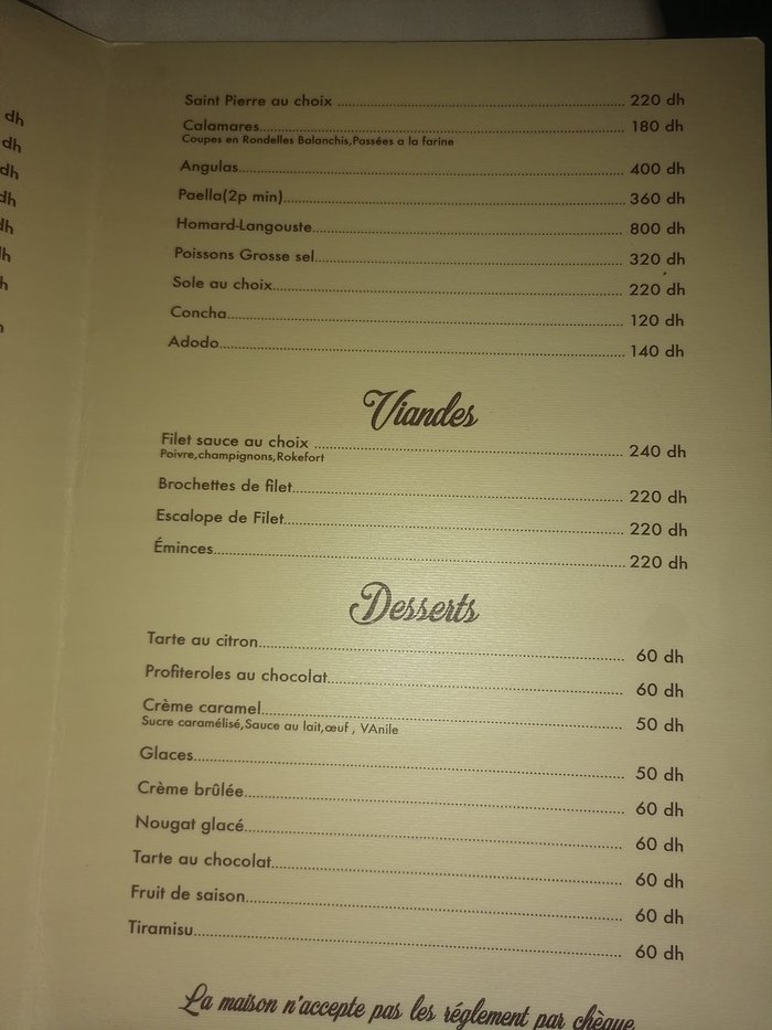 Meridiana Restaurant is located in the heart of the Moroccan city of M'diq, and it is considered one of the distinguished restaurants in the city. It specializes in serving fresh fish and seafood, in addition to many authentic Moroccan recipes, such as couscous, tagine, harira, and tanjia mararakshi. The restaurant is characterized by high-quality service, high cleanliness, reasonable prices, and stunning views of the city's coast.
