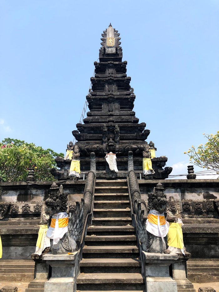 Meru Temple is the largest Hindu temple on the island of Lombok, which gives it great importance to Hindus. The temple is characterized by unique architecture, as it was built in the eighteenth century with the participation of 33 villages in Lombok. The temple is divided into 3 main squares (Nesta Mandala, Madhya Mandala, and Utama Mandal), and each square contains a building consisting of approximately 11 floors. The Utama Mandal is the most sacred place for Hindus in the temple, in addition to being the largest of the three squares, and Hindus come to pray in it. It is required to dress modestly when entering the temple, and it is easily accessible as it is located near the city of Matram.